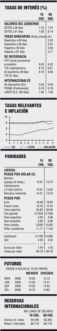 Estas reducciones tuvieron a su vez sustento en la revisión del marco macroeconómico previsto y utilizado como base para las proyecciones del gobierno (Gráfico 4) al cual el Conreso hizo cuatro cambios: 1) Redujo la expectativa de crecimiento del PIB para 2009 del 3 % previsto en la propuesta a 1.8% (actualmente tal expectativa oficial es ya de “0”… y ésta es la visón optimista); 2) modificó la expectativa del tipo de cambio promedio para este año de 10.60 a 11.70 pesos por dólar; 3) redujo el precio promedio del barril de crudo esper-ado para este año de 80.3 a 70 dólares (precio que muy difícilmente alcanzará, aunque se tomó una cobertura para garantizar los ingresos del fisco); y 4) llevó el equilibro fiscal propuesto (0.0) a un déficit de -1.8% del PIB que será financiado con la deuda mencionada.