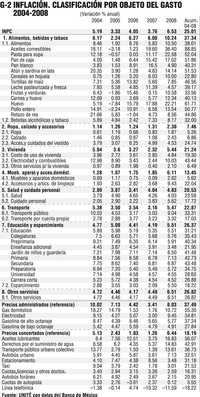 Medida por el Índice Nacional de Precios al Consumidor (INPC) la inflación en México fue en 2008 de 6.53% (Gráfico 1), la más alta en lo que va de esta década desde el 8.96% registrado en el año 2000.