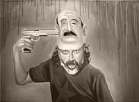En este trabajo reciente, Monroy expresa sus tribulaciones en torno a la violencia extrema que estamos viviendo en el mundo y, en particular, en nuestro país. Vemos en sus lienzos individuos que portan máscaras de personajes de la vida pública, como Carlos Salinas de Gortari, Elba Esther Gordillo, el Subcomandante Marcos, apuntando su sien con un revólver o con el dedo índice, en una expresión grotesca que recuerda los rostros desfigurados también por máscaras de James Ensor o de José Gutiérrez Solana. El artista se autorretrata en esta misma actitud, e incorpora a sus composiciones algunas de las referencias que han sido constantes a lo largo de su trabajo, como las aves, los Cristos en caída, las casas y su propia cabeza decapitada y sangrante. En comparación con su obra anterior, estas pinturas están inmersas en una atmósfera mucho más críptica que refleja la angustia y ferocidad del tema. Son pinturas que a un tiempo atraen y repelen por la ambigüedad de su realismo y teatralidad, donde el humor negro y la sátira son el punto de intersección entre la realidad y la ficción.