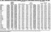 En otra clasificación de los asegurados en el IMSS por se-ctores y actividades –que no incluye a los trabajadores eventuales del campo– el número de trabajadores en diciembre de 2008 totalizó 14 millones 63 mil, cifra inferior en unos 38 mil asegurados menos que en diciembre de 2007 (Gráfico 2). En el sector agropecuario los asegurados sumaron 344 mil en números redondos, con 4 mil menos que en diciembre de 2007; en el sector industrial sumaron 4 millones 983 mil, esto es, 281 menos que el año previo, y en el sector servicios, 8 millones 736 mil, 247 mil más que en 2007.
