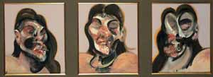 La visión de Bacon, desde finales de los años treinta hasta su muerte en 1992, era de un mundo despiadado. Repetidamente pintó el cuerpo humano, o partes del cuerpo, en malestar, carencia o dolor. A veces el dolor en cuestión parece infligido; más veces parece surgir desde dentro, desde las vísceras del mismo cuerpo, de la desgracia del ser físico. Bacon jugó a conciencia con su apellido para crear un mito, y con éxito. Afirmó ser descendiente de su tocayo, el filósofo empírico inglés del siglo XVI, y pintó la carne humana como si fuera una loncha de bacon (tranche du lard fumé).
