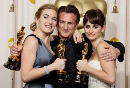 La cinta británica sobre un joven de los barrios bajos de India, que busca salir de la miseria en un programa de concursos de la televisión, fue la gran triunfadora al lograr las estatuillas de mejor película, dirección, guión adaptado, banda sonora, canción, edición, fotografía y mezcla de sonido. Sean Penn fue galardonado como mejor actor por el filme Milk; Kate Winslet (izquierda), mejor actriz, por The reader, y la española Penélope Cruz por su papel secundario en Vicky Cristina Barcelona. El curioso caso de Benjamin Button, que tenía 13 postulaciones, sólo se llevó tres Foto Ap