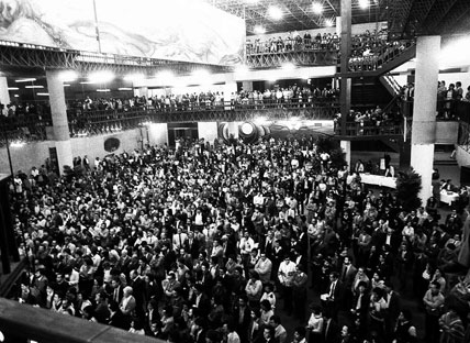 Al caer la noche del 29 de febrero de 1984, más de cinco mil personas con boleto pagado se acomodaban codo a codo en un salón del Hotel de México. Muchas más aguardaban pa- cientemente para entrar, formadas en una cola que llegaba hasta Insurgentes.
