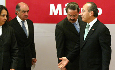 Envuelto en la polémica por la difusión de las grabaciones en las que acusó a Carlos Salinas de Gortari de haberse robado la mitad de la partida secreta, el ahora ex secretario de Comunicaciones y Transportes fue relevado en un acto que encabezó el presidente Felipe Calderón en Los Pinos. A un lado del mandatario está Juan Molinar Horcasitas, uno de sus hombres más cercanos desde la campaña presidencial; en el IMSS quedó Daniel Karam Toumeh. También se anunció la sustitución de Sergio Vela en el CNCA, el cual dirigirá ahora Consuelo Sáizar (izquierda). En los círculos políticos se señaló que los cambios en el gabinete son