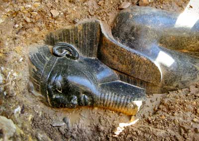Un equipo de arqueólogos descubrió dos estatuas del rey menhotep III, quien gobernó Egipto hace 3 mil 400 años, informó en El Cairo el Consejo Supremo de Antigüedades. Una de las piezas está hecha de granito negro (en la imagen), mientras la otra muestra al monarca en la forma de una esfinge, con cabeza humana y el cuerpo de león Foto Ap