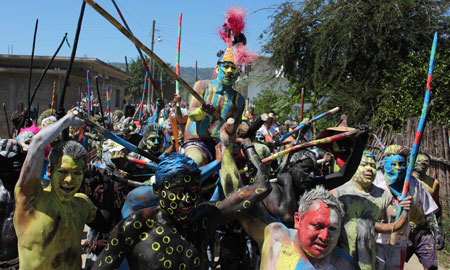 En Huautla, Hidalgo, el demonio no es un ente maligno, sino una dualidad: cura y embruja, y es al mismo tiempo señor del día y de la noche. Exige exceso de diversión durante el carnaval (nanahuatilis, en náhuatl), dedicado a Tlacatecólotl. El festejo en grande se realiza el Miércoles de Ceniza, con hombres pintados de cara y cuerpo Foto José Carlo González