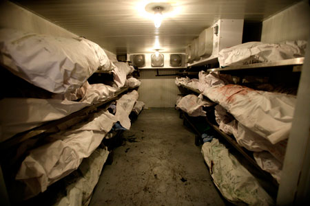 La directora de una primaria denunció que 10 padres de familia fueron asesinados el año pasado, mientras el conserje del plantel narró que en noviembre alguien le advirtió por teléfono: dígale a los maestros que estén pendientes con el aguinaldo, además de que la escuela comenzó a vaciarse, ya que de cada grupo asistían 15 de 35 alumnos durante ese mes. Hace poco fui al Distrito Federal y me sentí más seguro que nunca, afirma el ex rector Rubén Lau. En la imagen, cuerpos a los que aún no se aplica la autopsia en esa ciudad chihuahuense Foto Ap