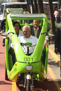 Alejandra Moreno Toscano, autoridad del Centro Histórico, y Marcelo Ebrard mostraron los transportes, los cuales empezarán a circular el lunes. El servicio será gratuito durante un mes Foto: Francisco Olvera