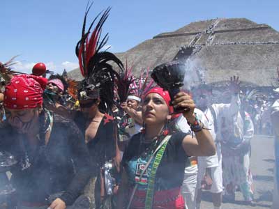 En Teotihuacán, miles de visitantes colmaron la Ciudad de los Dioses, en una tradición que unió a turistas, espiritistas, vendedores, grupos religiosos, esotéricos, danzantes y activistas, que juntos se