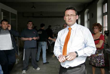 Derek Sherwin, gerente de la empresa británica Scapa, permanece retenido por trabajadores en la planta de Bellegarde, Francia. La firma anunció el próximo cierre de la fábrica Foto Ap