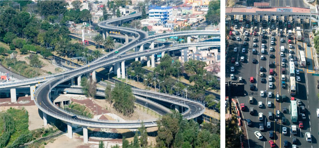 Mientras la mayor parte de las calles y avenidas estuvieron vacías, numerosos vehículos salieron de la capital (en la imagen, la caseta de la autopista a Cuernavaca). En tanto, 18 personas han sido remitidas ante el juez cívico en el contexto de la aplicación del alcoholímetro en las inmediaciones de las salidas del Distrito Federal Fotos Roberto García Ortiz