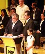Inútil intento de Alejandro Encinas por acallar abucheos y rechiflas contra Jesús Ortega, para que el dirigente del PRD pronunciara su discurso en el Auditorio Nacional Foto Marco Peláez