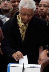 El ex presidente Nelson Mandela sufraga durante las elecciones para designar una nueva Asamblea General Foto Ap