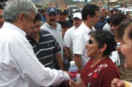 El tabasqueño acudió con 17 senadores del Frente Amplio Progresista a la histórica ciudad para expresar su respaldo a los trabajadores huelguistas, así como a sus familiares. Calificó de