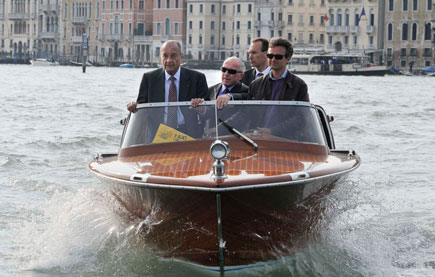 El ex presidente francés Jacques Chirac y el magnate Francois Pinault (centro) arriban al palacio en que se programó la fiesta por el matrimonio del hijo del segundo, Francois-Henri Pinault, con la actriz mexicana Salma Hayek. El enlace civil se realizó en París el pasado 14 de febrero Foto Reuters