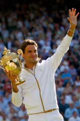 El suizo Roger Federer se convirtió ayer en el único jugador con 15 títulos de Grand Slam, al derrotar al estadunidense Andy Roddick en cinco sets, en la final del torneo de Wimbledon Foto Ap