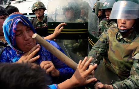 Militares dispersan a manifestantes en la capital provincial de Xinjiang. Decenas de integrantes de la etnia han, armados con barras y machetes, recorrieron ayer la ciudad en busca de musulmanes uigures para vengarse de los sangrientos enfrentamientos que en dos días dejaron 156 muertos y más de mil heridos. Las autoridades decretaron el toque de queda y miles de policías fueron desplegados Foto Reuters