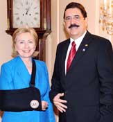 Hillary Clinton, secretaria de Estado estadunidense, recibió en Washington al mandatario Manuel Zelaya Foto Notimex