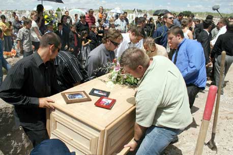 Cientos de personas participaron en las exequias de los activistas Benjamin Le Baron y su cuñado Luis Widmar, asesinados por sicarios. José Reyes Baeza Terrazas, gobernador de Chihuahua, quien acudió al acto funerario, dijo que ante la violencia criminal en el noroeste de la entidad decidió dar su apoyo a ciudadanos para que se armen, como ocurre en esa localidad, municipio de Galeana. Señaló que se les proporcionará capacitación y materiales de manera que se conviertan en policías de esa zona Foto Notimex