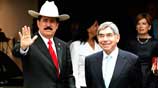 El presidente de Costa Rica, Óscar Arias, se reunió por separado con los hondureños Manuel Zelaya (izquierda) y Roberto Micheletti, quienes se negaron a encontrarse cara a cara, por el momento Foto Reuters