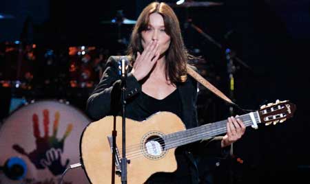 Carla Bruni, esposa del presidente francés Nicolas Sarkozy, participó en uno de los conciertos en homenaje al ex presidente sudafricano Nelson Mandela que se llevan a cabo en el Radio City Music Hall de Nueva York. En el festejo intervienen también Stevie Wonder, Aretha Franklin, Cyndi Lauper y Gloria Gaynor, entre otros artistas. Foto Reuters