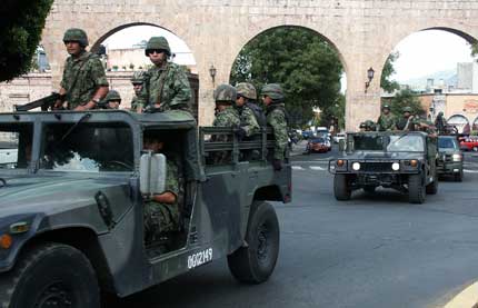 de forma unilateralde más militares al territorio michoacano, donde la colocación de retenes va en aumento. Los legisladores, que realizarán hoy un recorrido por la entidad, mostraron su respaldo al gobernador Leonel Godoy. La Secretaría de Gobernación respondió que no hay agravio contra las autoridades locales Foto Notimex
