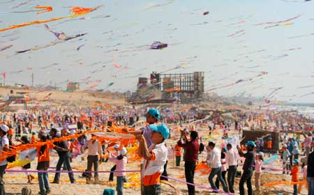 La Agencia de Naciones Unidas para los Refugiados Palestinos en Medio Oriente organizó un festival de papalotes en la playa Beit Lahiya, en el norte de la franja de Gaza Foto Reuters