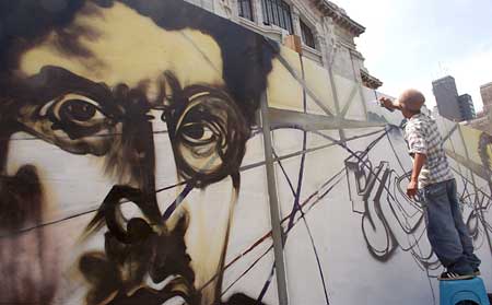 Alrededor del Palacio de Bellas Artes se colocó una cerca de madera de 217 metros, en la cual 20 equipos de jóvenes grafiteros podrán plasmar su arte, dentro de las actividades recreativas que el gobierno capitalino tiene contempladas para hoy, además del megaconcierto que se llevará a cabo en el Paseo de la Reforma Foto Notimex