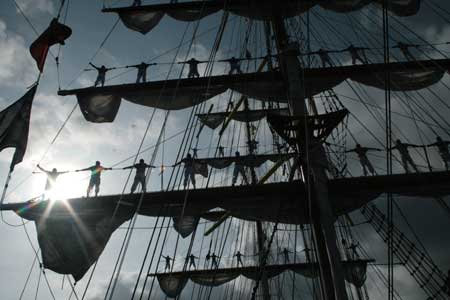 El buque escuela Cuauhtémoc arribó ayer al puerto de Acapulco tras concluir la instrucción de 98 guardiamarinas en aguas del Pacífico durante 167 días. A su regreso fueron recibidos por el presidente Felipe Calderón, quien tras reconocer la labor de la Marina también habló de la crisis, la cual calificó de