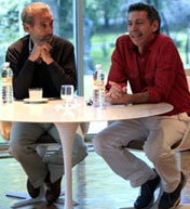 Vicente Rojo, acompañado de Osvaldo Sánchez, deleitó a los asistentes al Museo de Arte Moderno con una charla sobre su llegada a México, su obra, sus amigos y sus múltiples intereses artísticos Foto María Luisa Severiano