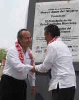 El presidente Felipe Calderón y el gobernador Juan Sabines inauguraron Nuevo Juan de Grijalva, la primera ciudad rural sustentable del mundo, la cual alberga desde ayer a 410 familias que se hallaban dispersas y en pobreza extrema