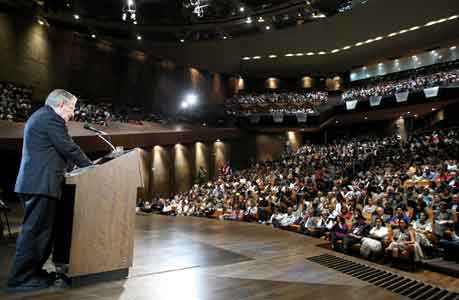 El filósofo y lingüista Noam Chomsky ofreció ayer una conferencia magistral en la atestada Sala Nezahualcóyotl, del Centro Cultural Universitario, en la cual expuso su concepción de la realidad mundial unipolar, con Estados Unidos como máximo exponente. Invitado por La Jornada por sus 25 años de vida, el prestigiado académico del Instituto Tecnológico de Massachusetts describió al presidente Barack Obama como una mercancía, con una mercadotecnia tan exitosa que el año pasado mereció el primer lugar en campañas promocionales Foto Marco Peláez