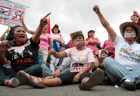 Simpatizantes del presidente Manuel Zelaya bloquearon un camino a las afueras de Tegucigalpa en protesta por las acciones del gobierno de facto para restringir las libertades de expresión y de libre tránsito Foto Reuters