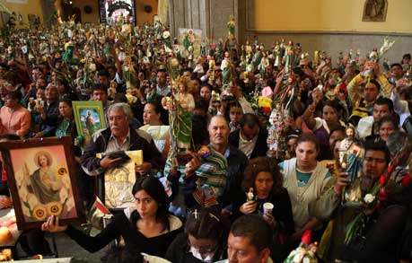 Cientos de feligreses acudieron a la iglesia de San Hipólito, ubicada en Puente de Alvarado, esquina Paseo de la Reforma, para entonar las Mañanitas a San Judas Tadeo. A las tradicionales solicitudes al apóstol de
