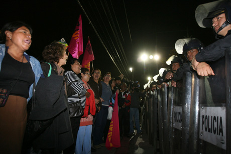 Seguidores de Clara Brugada formaron un cordón humano, dentro de las acciones pacíficas para rechazar la traición de Rafael Acosta, Juanito, y los grupos que están detrás de él. Granaderos resguardan la sede delegacional tras el asalto al inmueble, hecho que condenó ayer el PRD capitalino Foto José Antonio López