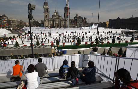 El ambiente navideño se dejó sentir en la Plaza de la Constitución, cuando decenas de capitalinos aprovecharon la inauguración de la pista de hielo y de otros juegos, como guerritas de nieve o la elaboración de los tradicionales muñecos. Las actividades son organizadas por el Gobierno del Distrito Federal y se espera que para este fin de semana la afluencia sea masiva Foto Cristina Rodríguez