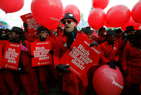 La marcha internacional convocada ayer en Copenhague para denunciar la falta de legitimidad de los gobiernos que buscan soluciones falsas al cambio climático superó las expectativas, ya que acudieron más de 100 mil personas Foto Reuters
