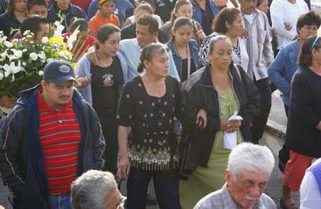 Irma Córdova Pérez (al centro), madre del maestre Melquisedet Angulo Córdova, y Josefa Angulo Flores, tía del finado marino, fueron captadas el pasado lunes en Paraíso, a unos 80 kilómetros de Villahermosa, durante el funeral del integrante de la Armada de México. En los hechos de ayer, otra tía del extinto oficial resultó herida de bala durante el ataque a esa familia, donde un comando armado irrumpió en su domicilio y abrió fuego con rifles R-15 y AK-47 Foto Ap