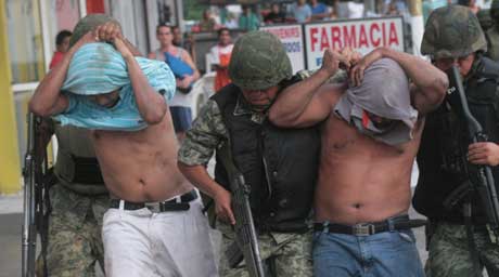 Sujetos armados que pretendieron secuestrar a un empresario guerrerense se enfrentaron a balazos con policías ministeriales. En los hechos participaron efectivos del Ejército Mexicano. Cuatro presuntos plagiarios fueron detenidos luego de una espectacular persecución que provocó terror entre turistas y porteños en un largo tramo de la principal avenida de Acapulco. Uno de los maleantes resultó lesionado. Policías y soldados dieron alcance a los delincuentes luego que éstos chocaron contra el portón de una residencia la camioneta en la que huían. Por otra parte, ayer se reportaron 34 asesinatos presuntamente vinculados con el crimen organizado. Las ejecuciones fueron cometidas en Guerrero, Chihuahua, BC, Sinaloa, Edomex, Sonora y Michoacán Foto La Jornada Guerrero