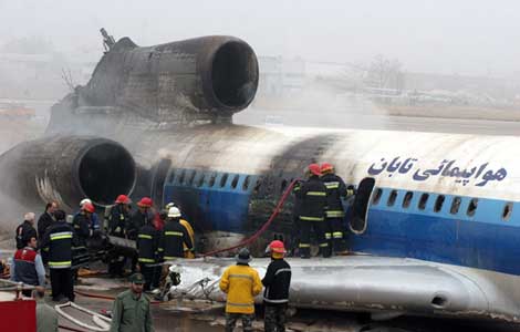 Al menos 55 personas resultaron heridas en el aeropuerto de la ciudad de Mashad, en el norte del país asiático, cuando la nave Tupolev 154 de la aerolínea local Tabal Airlines, con 157 pasajeros y 13 miembros de la tripulación a bordo, se incendió en la parte trasera al tocar tierra y se le desprendió el ala izquierda. Los equipos de emergencia acudieron de inmediato y los lesionados fueron hospitalizados; ninguno fue reportado de gravedad. Las primeras indagaciones señalan que el siniestro pudo deberse al mal tiempo Foto Notimex