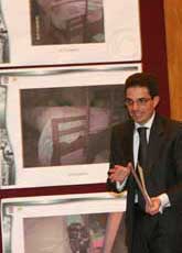 El procurador mexiquense Alberto Bazbaz muestra en imágenes la rendija entre el colchón y otra parte de la cama de Paulette Gebara, donde fue encontrado el cadáver de la menor Foto agencia MTV