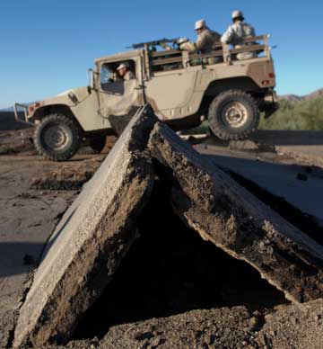 Más de 150 kilómetros de caminos de Baja California necesitan reparación tras el movimiento telúrico de 7.2 grados en la escala de Richter ocurrido el pasado domingo. Ayer, el presidente Felipe Calderón visitó la zona y los habitantes del valle de Mexicali le expresaron su miedo al continuar las réplicas del terremoto. La Coordinación General de Protección Civil emitió una declaratoria de emergencia para el municipio, de manera que autoridades estatales tengan acceso a los recursos del Fondo de Desastres Naturales. El balance, hasta ahora, es de dos muertos, más de 100 lesionados y pérdidas materiales aún no cuantificadas Foto Ap