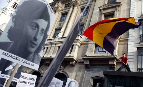 En Madrid y otras ciudades de España decenas de miles de personas salieron a las calles para exigir justicia por los crímenes de la dictadura fascista de Francisco Franco. Durante las concentraciones ondeó en todo lo alto la bandera republicana. En la capital mexicana, un grupo de exiliados y sus descendientes se unieron a las protestas Foto Reuters