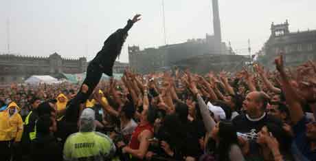 Más de 75 mil personas acudieron al Zócalo para el concierto Todos somos Arizona, en repudio de la ley antinmigrante aprobada recientemente en ese estado. Los grupos Maldita Vecindad, Jaguares, Molotov, Tijuana Sound Machine y Los Bunkers se sumaron a la lucha en favor de los derechos humanos de connacionales y contra la enmienda racista Foto Jesús Villaseca