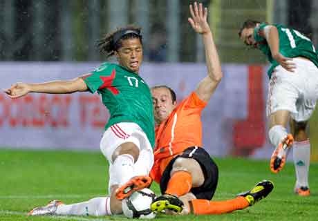 En un partido bajo intensa lluvia, el Tri tuvo un desastroso primer tiempo ante Holanda, y aunque se repuso en el complemento, cayó 2-1. A Javier Aguirre no le funcionaron los considerados suplentes, quienes recibieron un baile y se salvaron de una goliza. Al relevo entraron Pablo Barrera, Giovanni dos Santos, Efraín Juárez y Carlos Vela para corregir el rumbo. El equipo europeo jugó sin cinco titulares Foto Ap