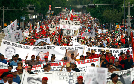 Mineros, maestros, organizaciones sociales y estudiantes se sumaron a la marcha convocada por el Sindicato Mexicano de Electricistas hacia el Zócalo capitalino.