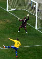 Brasil aseguró su clasificación a octavos de final al vencer 3-1 a Costa de Marfil. Luis Fabiano anotó dos tantos; el primero (en la imagen) fue un riflazo Foto Ap