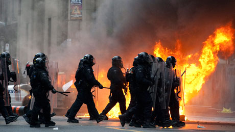 Las manifestaciones en contra de la cumbre del G-20, que se realiza en la ciudad canadiense de Toronto, derivaron en disturbios, con saldo de tres lesionados y al menos 75 detenidos. En la reunión, los líderes de las economías más grandes se acercaron a un acuerdo para reducir sus déficit presupuestarios dentro de tres años Foto Ap