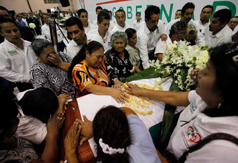 Miles de priístas acudieron a dar el último adiós a Rodolfo Torre Cantú y cuatro colaboradores, quienes fueron asesinados el pasado lunes por un grupo armado. El homenaje de cuerpo presente al que fue candidato de la alianza Todos por Tamaulipas se realizó en el Polifórum de Ciudad Victoria Foto Ap