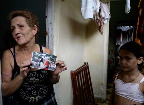 Mireya Penton, madre de Lester González, uno de los 47 opositores que serán liberados en un plazo de tres a cuatro meses, muestra una imagen de su hijo. Otros cinco disidentes, los más enfermos, podrán salir de Cuba de inmediato Foto Ap